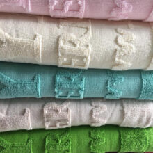 Quy cách đóng khăn dệt logo: 70x140cm, 500gram/ cái, 100% cotton.